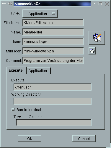 To change a menuentry select 'Change' from its popupmenu. You will be presented the following dialog.