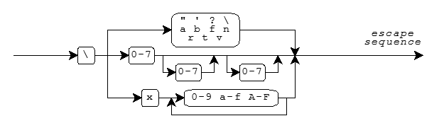 Within character constants and string literals, you can write a variety of escape sequences. Each escape sequence determines the code value for a single character. You use escape sequences to represent character codes: