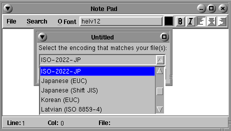 If you're opening an existing Japanese file, you must specify the encoding that matches your file before you open it. If the encoding doesn't match, you won't be able to read the file. If you can't read a Japanese file, try a different encoding option. |