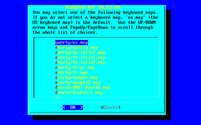 If you require a keymap other than the United States “qwerty” layout, you may want to take a look at this section. It offers a number of alternate layouts for your keyboarding enjoyment.